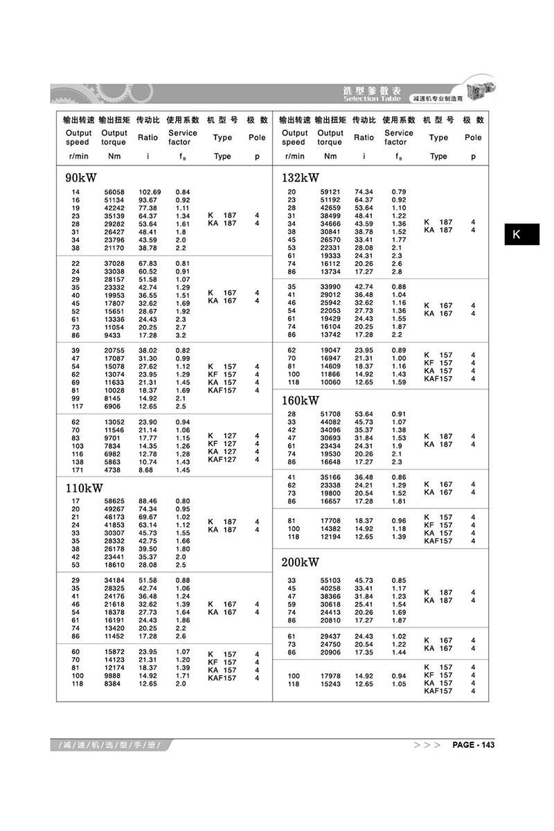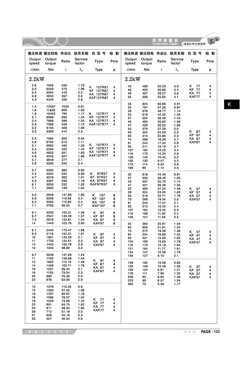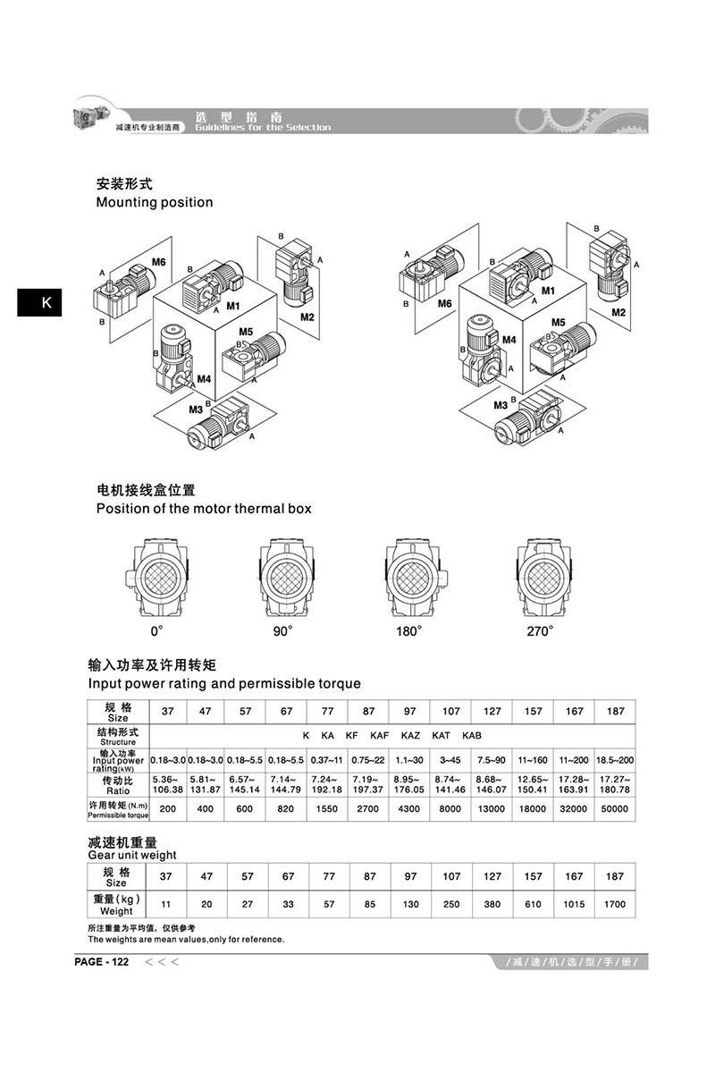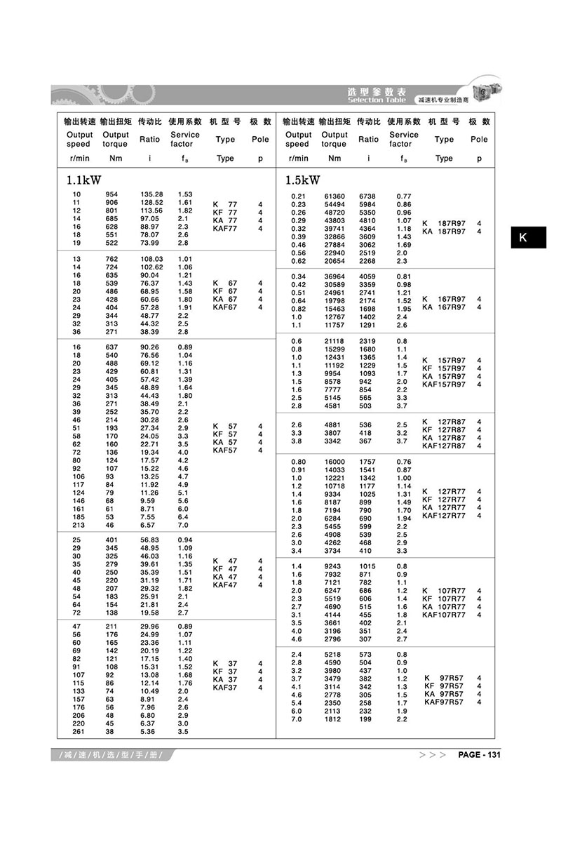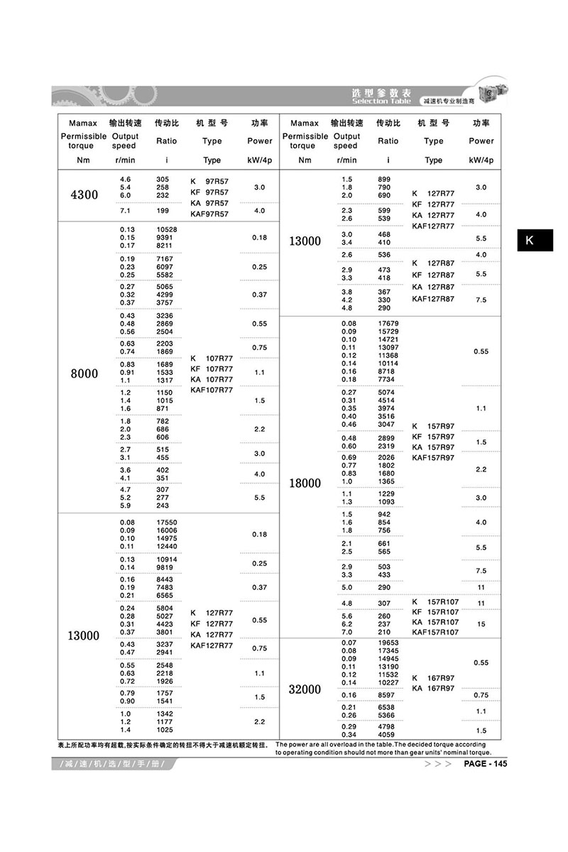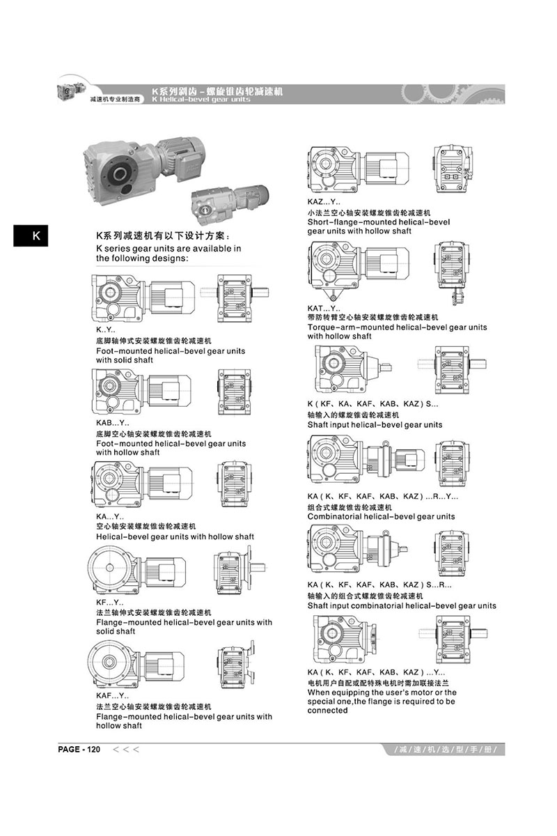 K系列斜齿-螺旋锥齿轮减速机主变速齿轮采用格里森准双曲线齿制,硬齿面,承载能力大,噪音低,寿命长,效率高。