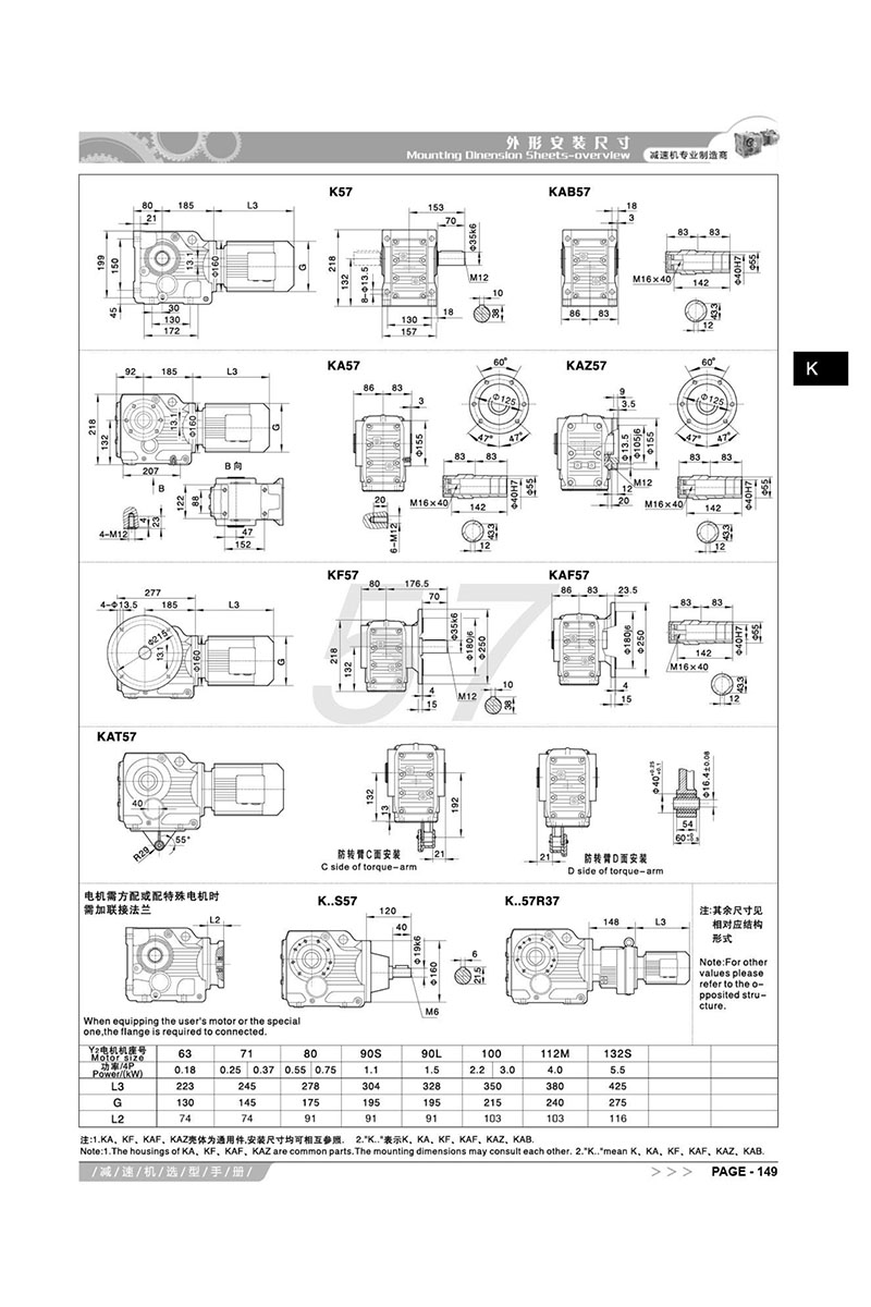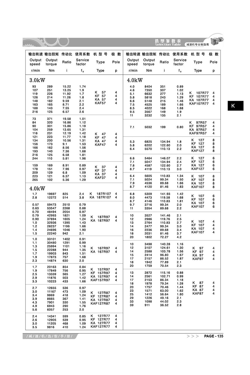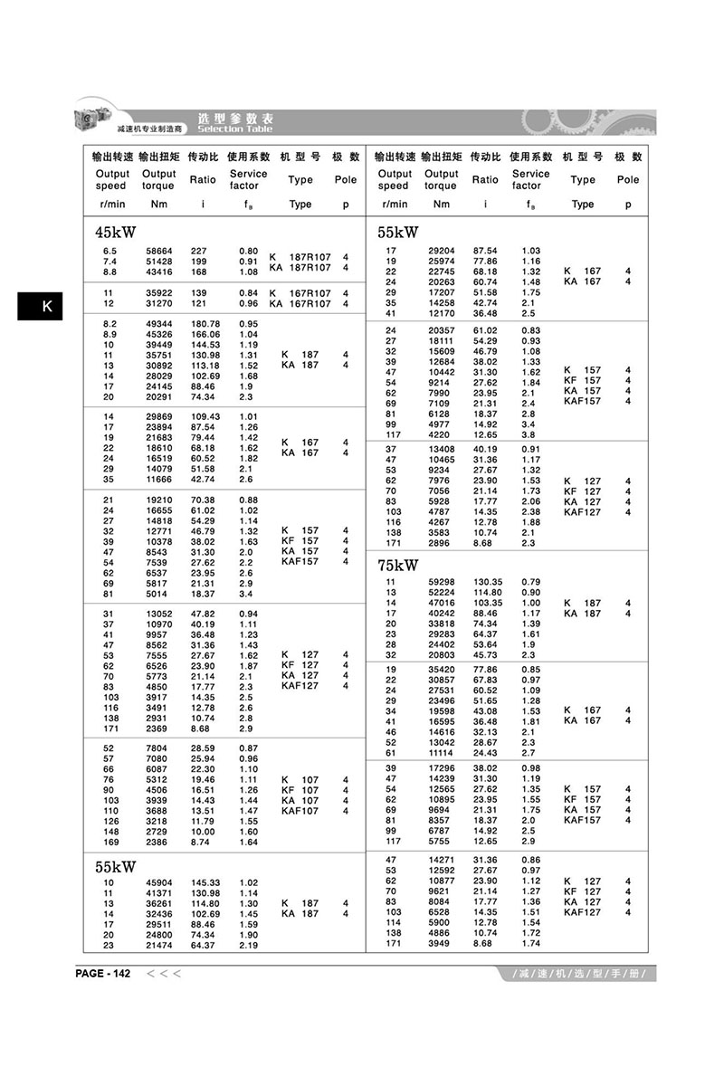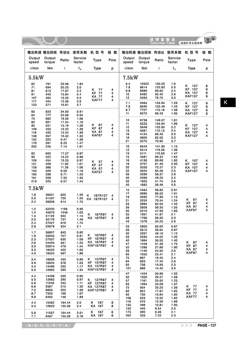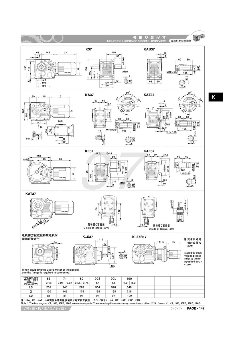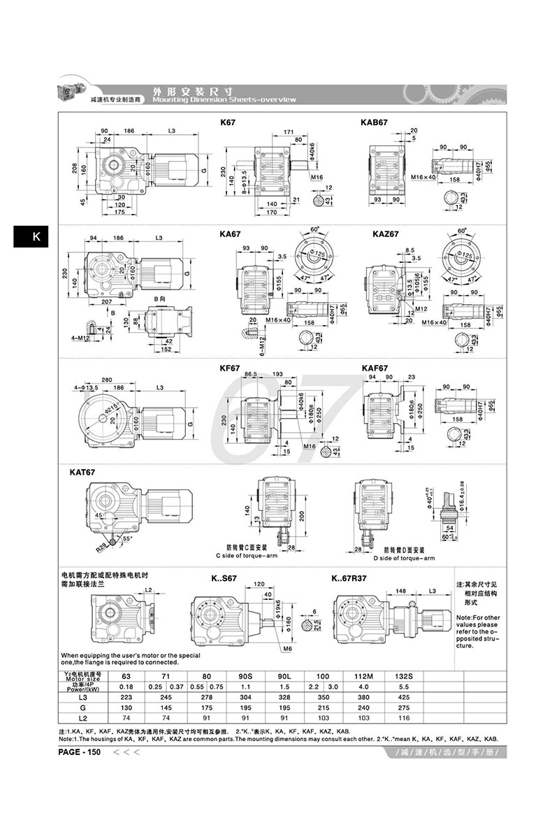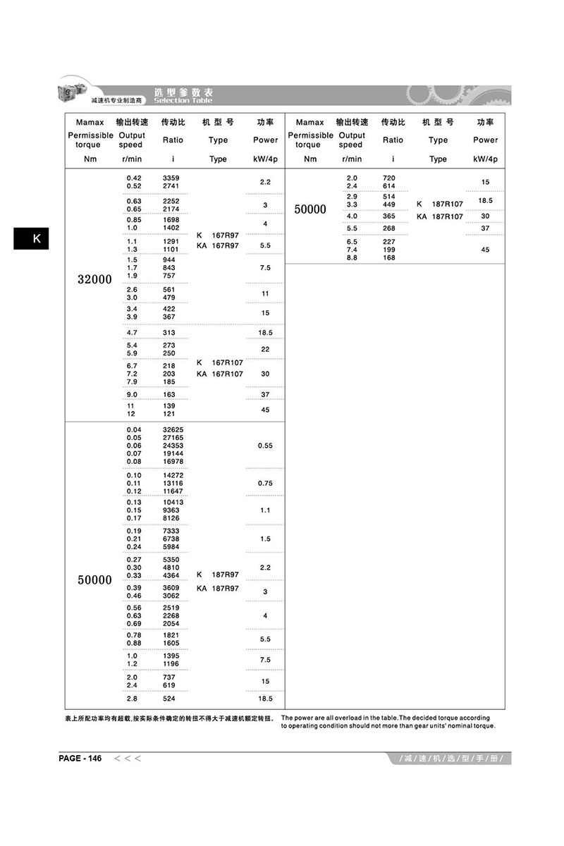 K系列斜齿-螺旋锥齿轮减速机主变速齿轮采用格里森准双曲线齿制,硬齿面,承载能力大,噪音低,寿命长,效率高。
