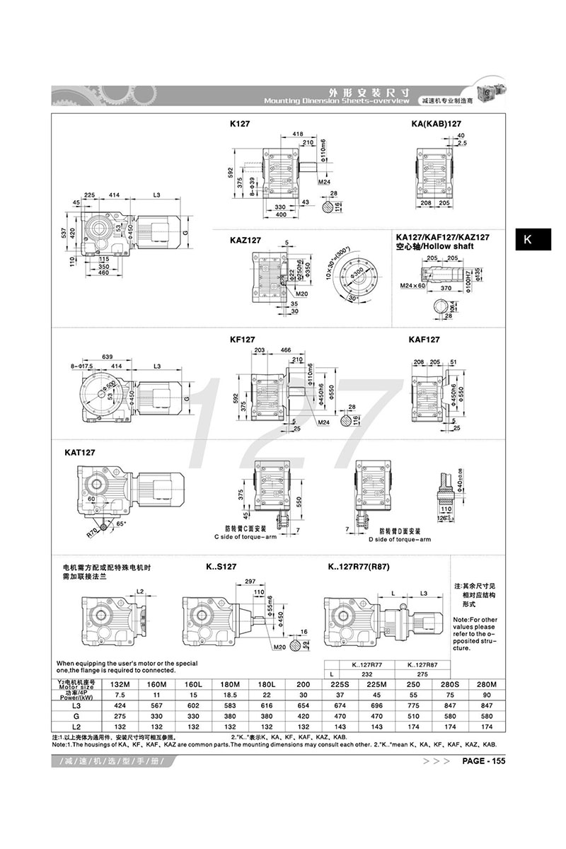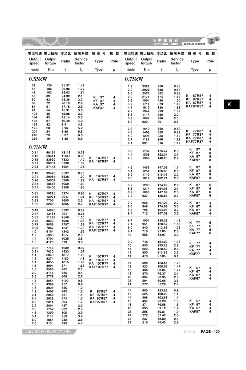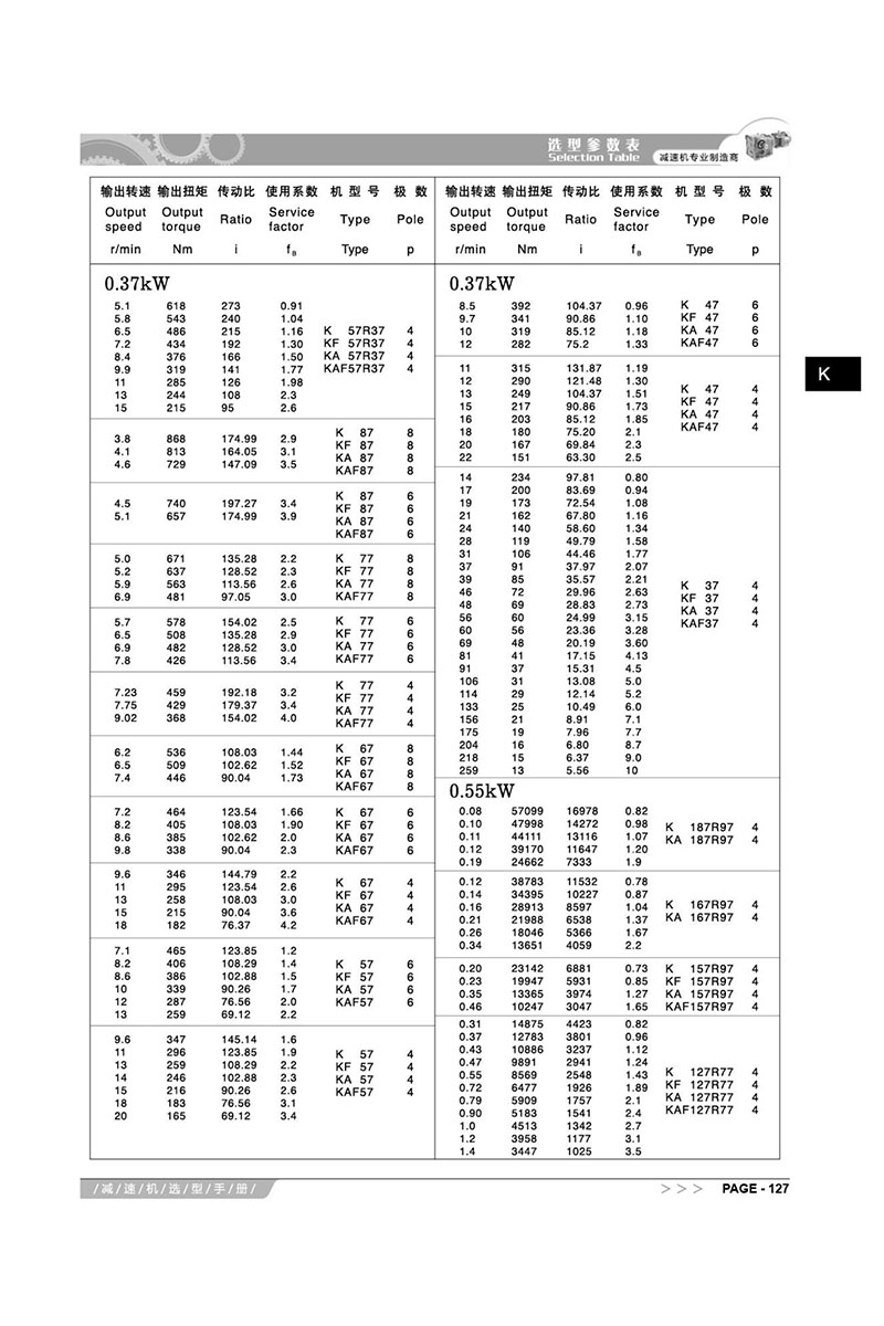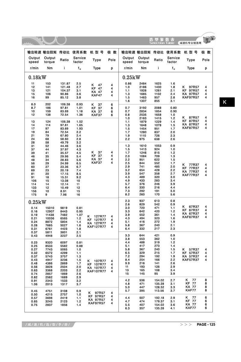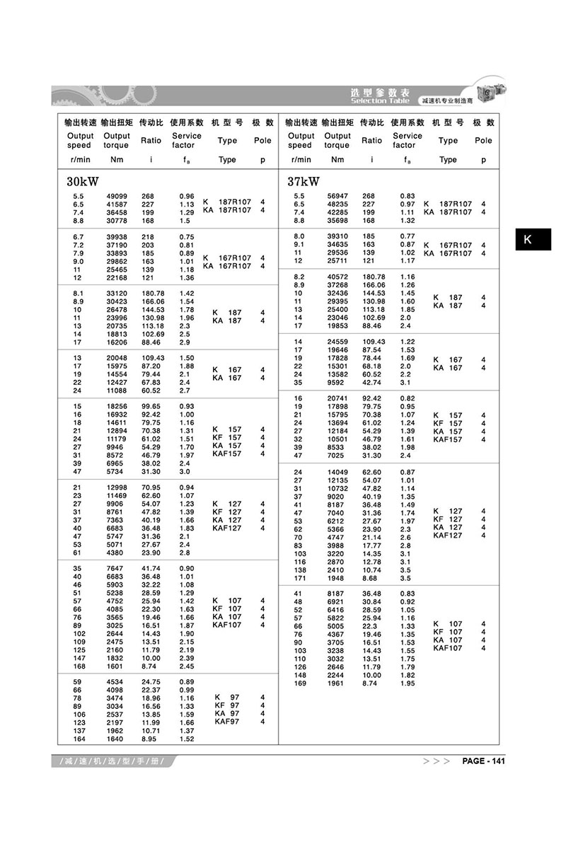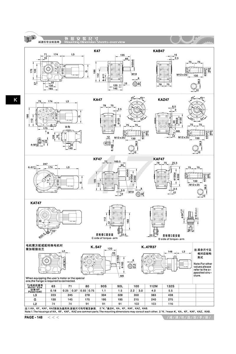 K系列斜齿-螺旋锥齿轮减速机主变速齿轮采用格里森准双曲线齿制,硬齿面,承载能力大,噪音低,寿命长,效率高。