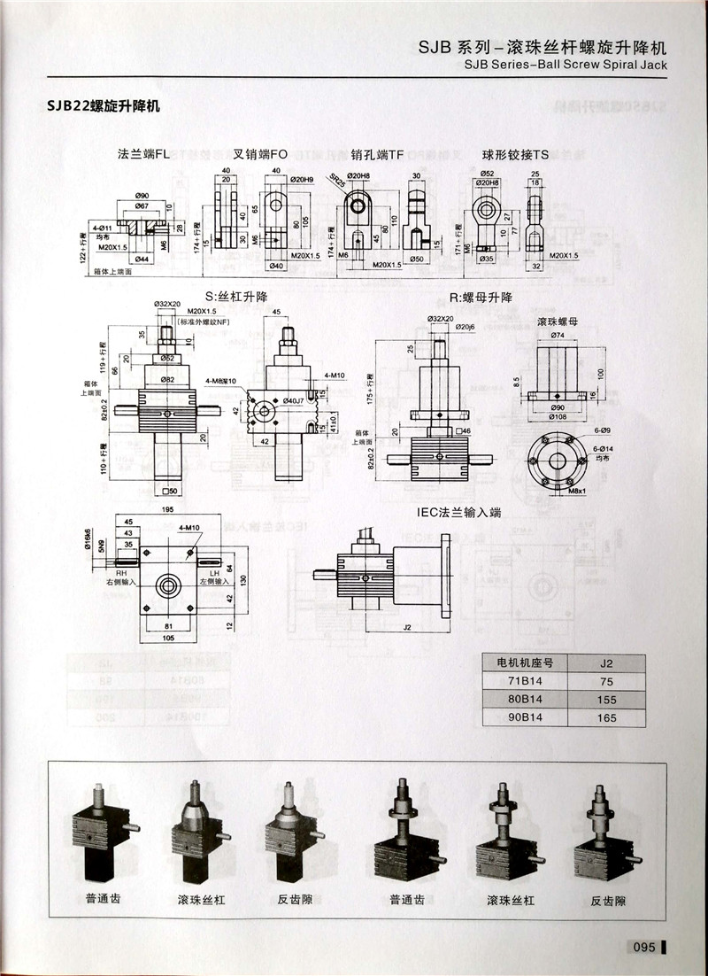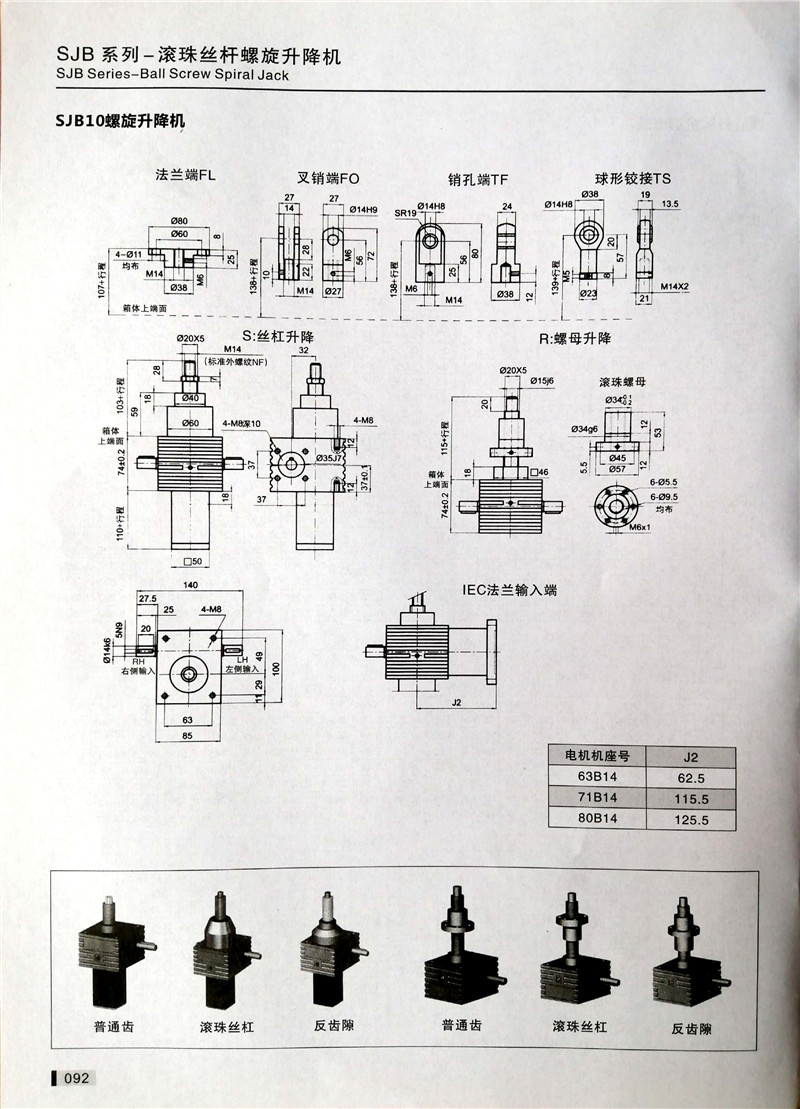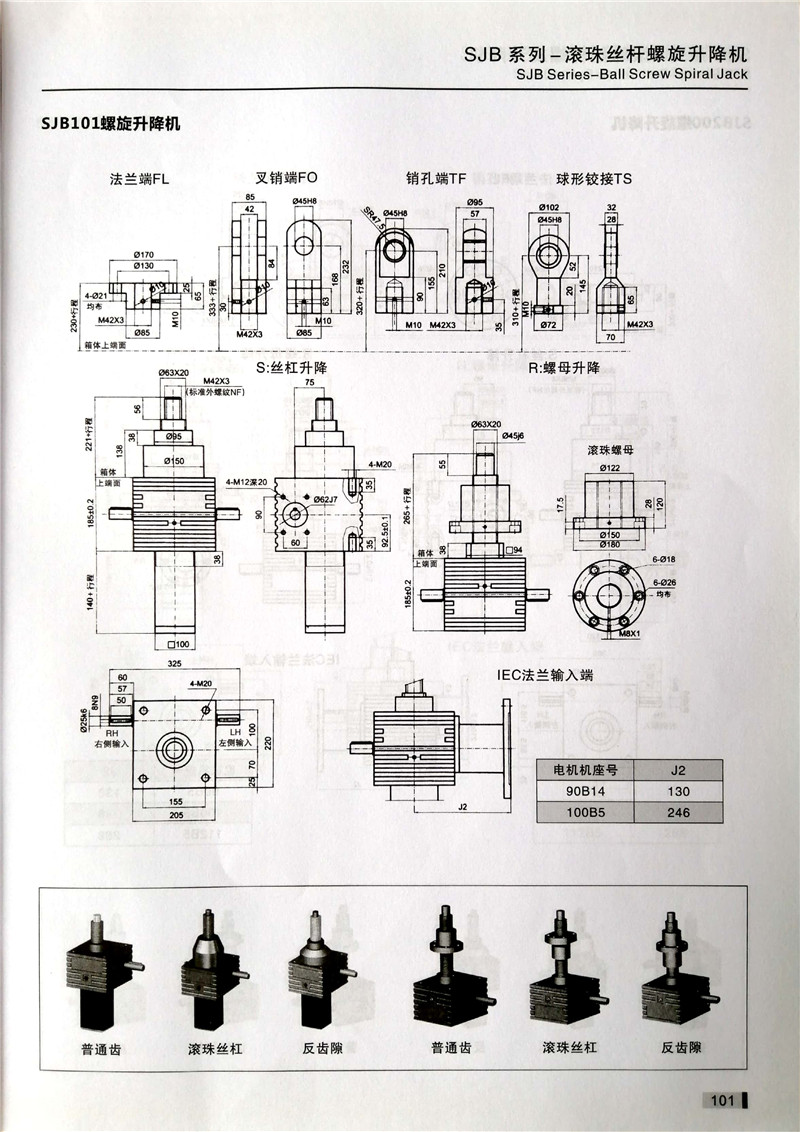 SJB系列滚珠丝杠螺旋升降机产品的寿命主要由滚珠丝杠的寿命及蜗轮蜗杆等零部件寿命决定;我们主要校核滚珠丝杠的寿命,蜗轮蜗杆会有磨损,但寿命一般比滚珠丝杠长。滚珠丝杠的预期寿命L10是90%的滚珠丝杠在金属材料疲劳失效前所能达到或超过的运行距离。单位为百万毫米。滚珠丝杠预期寿命L10并非是保质承诺,同时寿命的预期要在正确的维护,无污染物和正确的润滑。